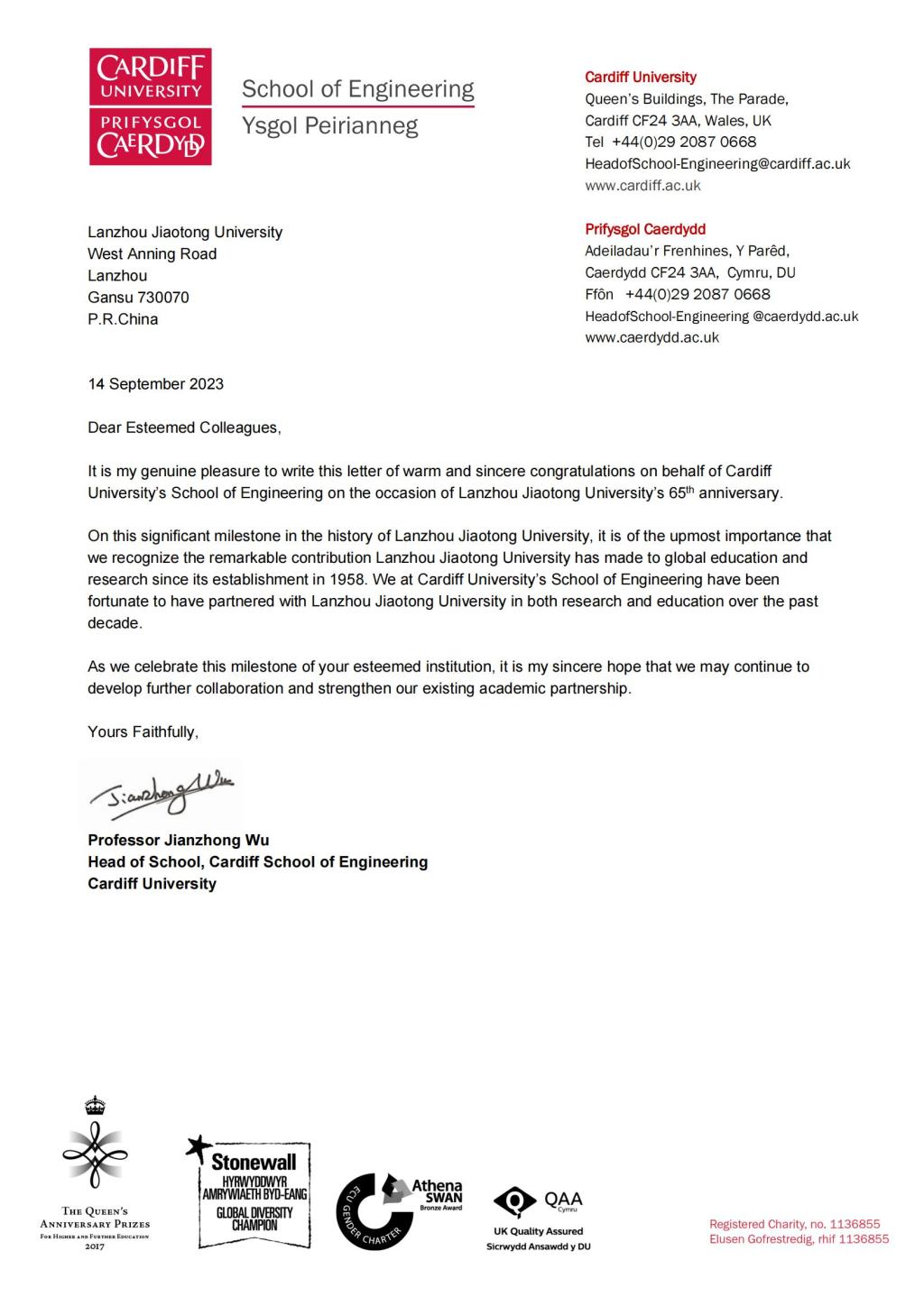 丹桂飘香秋意浓,金秋时节硕果丰。在学校建校65周年之际,我校国(境)友好合作院校纷纷发来贺信表示祝贺。