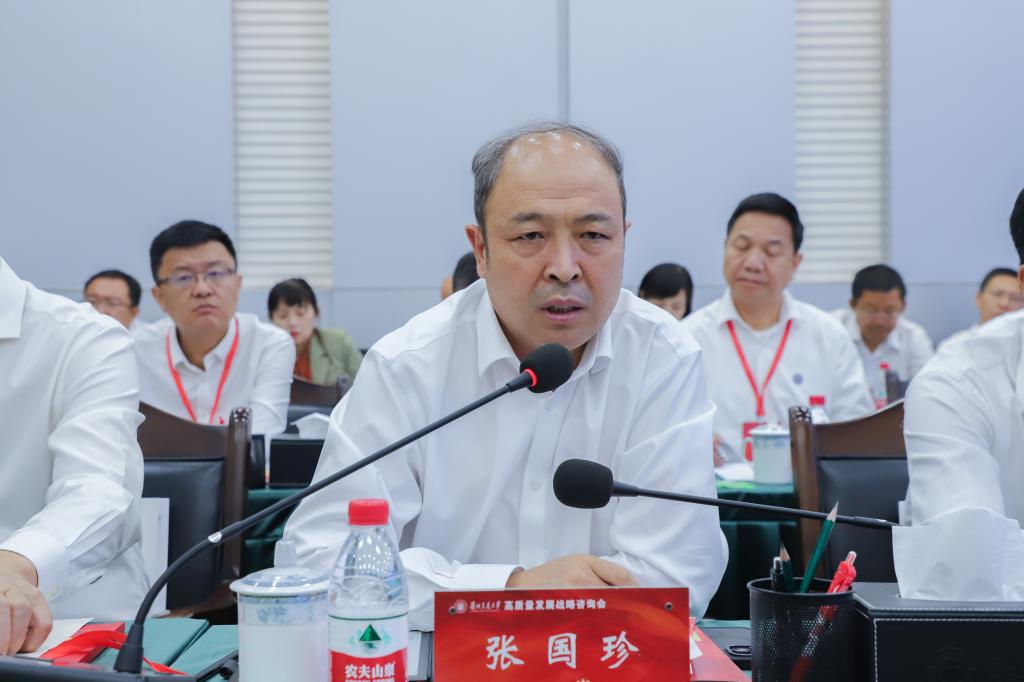 张国珍作《打造甘肃高校支撑战略支点服务西北先行先试新发展》为题的主旨发言。他代表省委教育工委、省教育厅向各位院士、专家来兰州交通大学指导表示诚挚的欢迎。向会议的召开表示热烈的祝贺。他指出,65年来,兰州交通大学在服务国家和区域战略,以及交通事业发展进程中作出了不可替代的贡献。张国珍从“把定位、应呼唤、强作为”三个维度,对学校高质量发展提出几点认识与思考。一是深刻把握时代新定位。深刻认识“教育是国计”战略地位,系统领会“三位一体”全新部署,科学把握“高等教育龙头”作用,大力弘扬“西迁精神”家国内涵。二是主动回应使命新呼唤。以大情怀融入新一轮西部大开发,以大视野融入“一带一路”建设,以大格局融入“交通强国”建设,以大手笔融入“改革先行区”实践,以大优势融入“生态保护”战略,以大担当融入“一核三带”发展格局。三是系统展现赋能新作为。在“双一流”建设上求突破,在高层次人才队伍建设上求突破,在提高人才自主培养质量上求突破,在产教融合科教融汇上求突破,在支撑服务经济社会发展上求突破。张国珍表示,希望各位院士、行业企业专家学者不吝赐教,为兰州交大走实、走好、走宽高质量发展之路,建言献策、广施良计。也真诚地希望各位发挥视野宽、平台大、人脉广、资源多的优势携手助力兰州交大实现新突破、抒写新篇章、取得新辉煌。