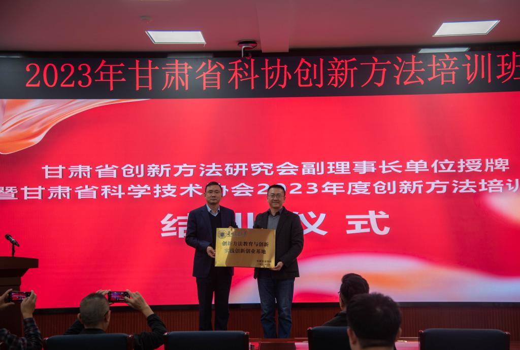 在29日举办的培训班结业典礼上,甘肃省创新方法研究会理事长谢黎明致辞,并为兰州交通大学作为甘肃省创新方法研究会副理事长单位授牌。学校创新创业学院相关负责人为“兰州交通大学创新方法教育与创新实践创新创业基地”授牌。