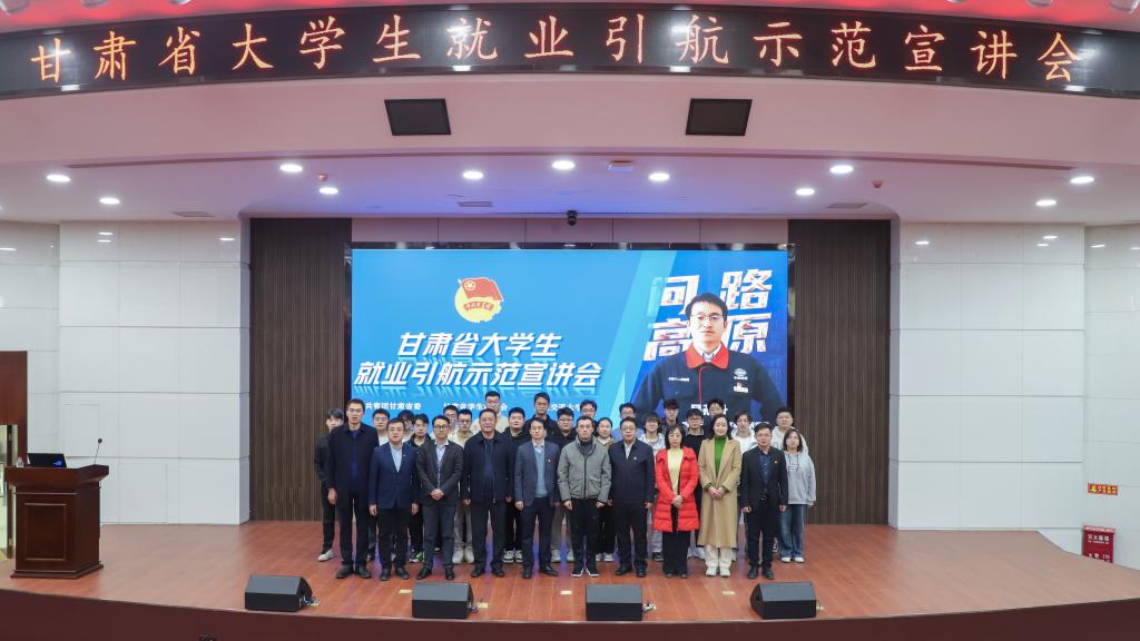 11月16日下午,甘肃省大学生就业引航计划秋季学期首场示范宣讲会在兰州交通大学尚德楼大报告厅举行。全国五一劳动奖章获得者、兰州交通大学土木工程学院校友、中铁十二局集团第四工程有限公司执行董事、总经理、党委副书记吴燕升应邀来校,为广大师生作了题为“不忘初心跟党走热血青春建新功”的就业引航专题宣讲。共青团甘肃省委学校部负责人,校团委、校友办、招生就业处等职能部处相关负责人,土木工程学院党委负责人,兰州交通大学第16期青马班学员、土木工程学院学生代表共300余人参加宣讲会。