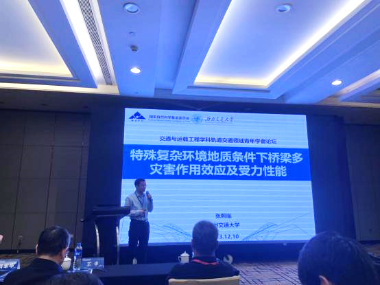 张熙胤教授在本次论坛中作了题为“特殊复杂环境地质条件下桥梁多灾害作用效应及受力性能”的报告,张小安副教授作了题为“轨道交通噪声若干问题研究”的报告,孟佳东老师和胡啸老师分别进行了“基于特征能量分布特性的滚动轴承全生命周期健康状态模式识别方法”和“管道列车流场结构时空演化特征及其流动控制策略”的墙报成果交流。李引珍教授作为特邀嘉宾参与论坛并作点评发言。