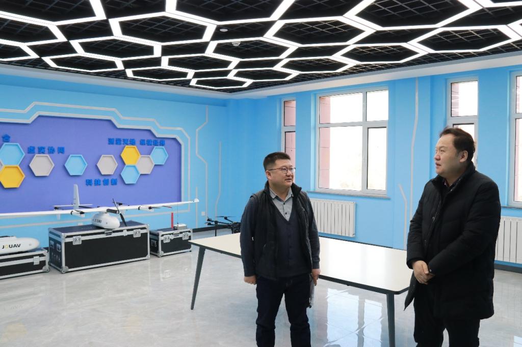 座谈结束后,霍海峰走访了测绘科学与技术学科专业实验室,详细了解实验室的建设和使用情况。随后,他来到无人机协会工作室,与协会同学进行了亲切交流和讨论。