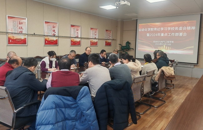 1月15日,自动化学院在704会议室召开全体教工大会,传达学习会议精神。1月20日,学院组织召开系室负责人及教师代表会议,再次就会议精神进行了深入学习与研讨,并对2024年度重点工作进行了部署。会上要求学院各系室进一步增强工作的紧迫感和责任感,从政治上提升落实意识,从行动上压实落实责任,从作风上强化落实保障,全面贯彻落实学校本次会议精神,高质高效推进2024年重点工作,促进学院高质量发展。各分管副院长就2024年重点工作做了详细部署。各系室负责人及教师代表纷纷表示将结合学校第十二次党代会确定的“1152”奋斗目标,找准发力点和突破口,通过补短板、强弱项、提能力,努力为实现学院2024年的任务目标贡献力量。
