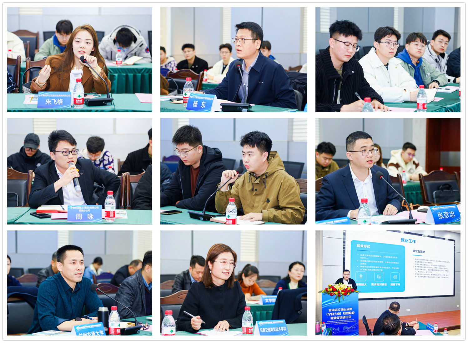 兰州交通大学、兰州博文科技学院、甘肃交通职业技术学院作为联盟代表分别就学校就业工作开展情况进行了详细介绍。他们分享了学校在就业指导、校企合作、实践教学等方面的创新举措和取得的显著成果,展示了联盟高校在推动毕业生就业方面的积极态度和坚实行动。中铁四局八公司、中车浦镇阿尔斯通运输系统有限公司、中铁十二局四公司、中铁建工集团四公司及新疆西南公司、天津港航工程有限公司等企业代表就当前交通运输行业的发展趋势、校园招聘的实际情况做了介绍,并对相关高校在人才培养和就业市场需求等方面进行了积极的反馈和建设性建议。