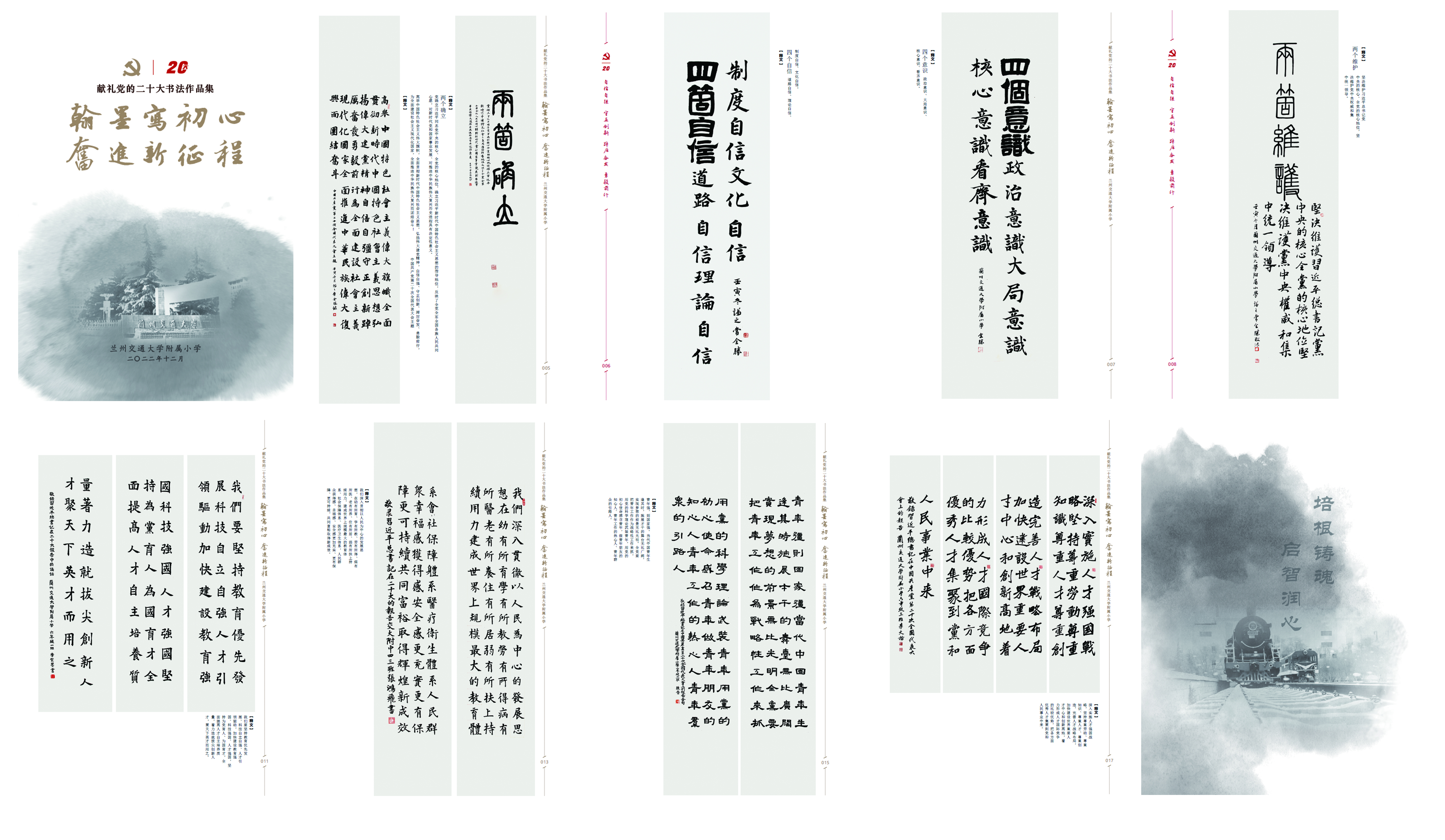 每周思政金句,铸魂培育新人。教书育人在细微处,学生成长在活动中。学校利用每周升旗仪式时间,组织“思政金句推介”活动,学校思政教师会将“学习强国”上的“每日金句”和《习近平用典》一书里的重要典籍语句整理出来与学生分享,给学生讲清该思政金句的出处以及用意,组织学生大声齐读,熟记于心。每周还以“思政金句”为内容,组织全体教师进行粉笔字书写练习,真正做到让“金句”进校园、进头脑,发挥了“金句”的教育引领作用,寓思政教育于无形的活动当中。在党的二十大胜利闭幕后,学校直属党支部举办了以习近平总书记二十大报告中关于教育领域的经典金句为创作主题的《翰墨写初心·奋进新征程》师生主题书法展。在“世界读书日”活动中,组织党员教师将习近平总书记近些年在不同场合提及的书目汇总归类,在学校主题宣传栏中开辟专栏制作了“总书记的书单”栏目,让全校师生一起学习习近平总书记“一物不知,深以为耻,便求知若渴”的读书态度,从阅读中汲取智慧,涵养精神力量。