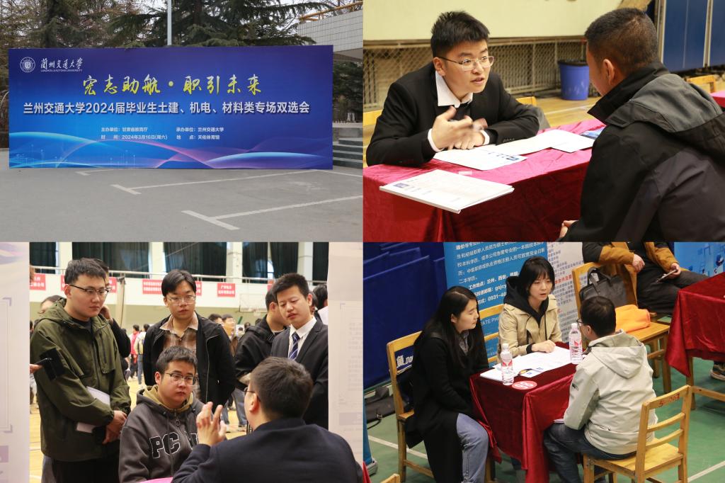 3月16日上午,【宏志助航▪职引未来】兰州交通大学2024届毕业生土建、机电、材料类专场双选会在我校天佑体育馆举行。副校长苏程在招生就业处负责人陪同下,到招聘会现场慰问各单位招聘代表,并与招聘代表进行交流。
