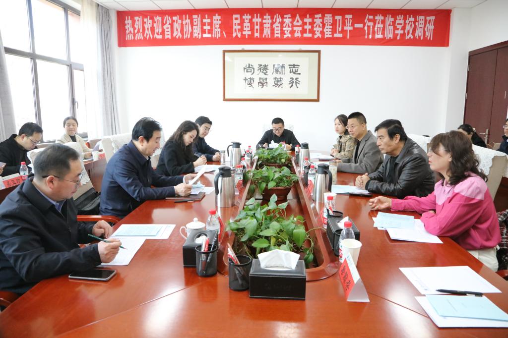 3月20日上午,省政协副主席、民革甘肃省委会主委霍卫平一行来校调研。我校党委书记狄生奎会见了霍卫平一行,并主持召开了交流座谈会。党委统战部负责人及民革党员代表参加座谈会。