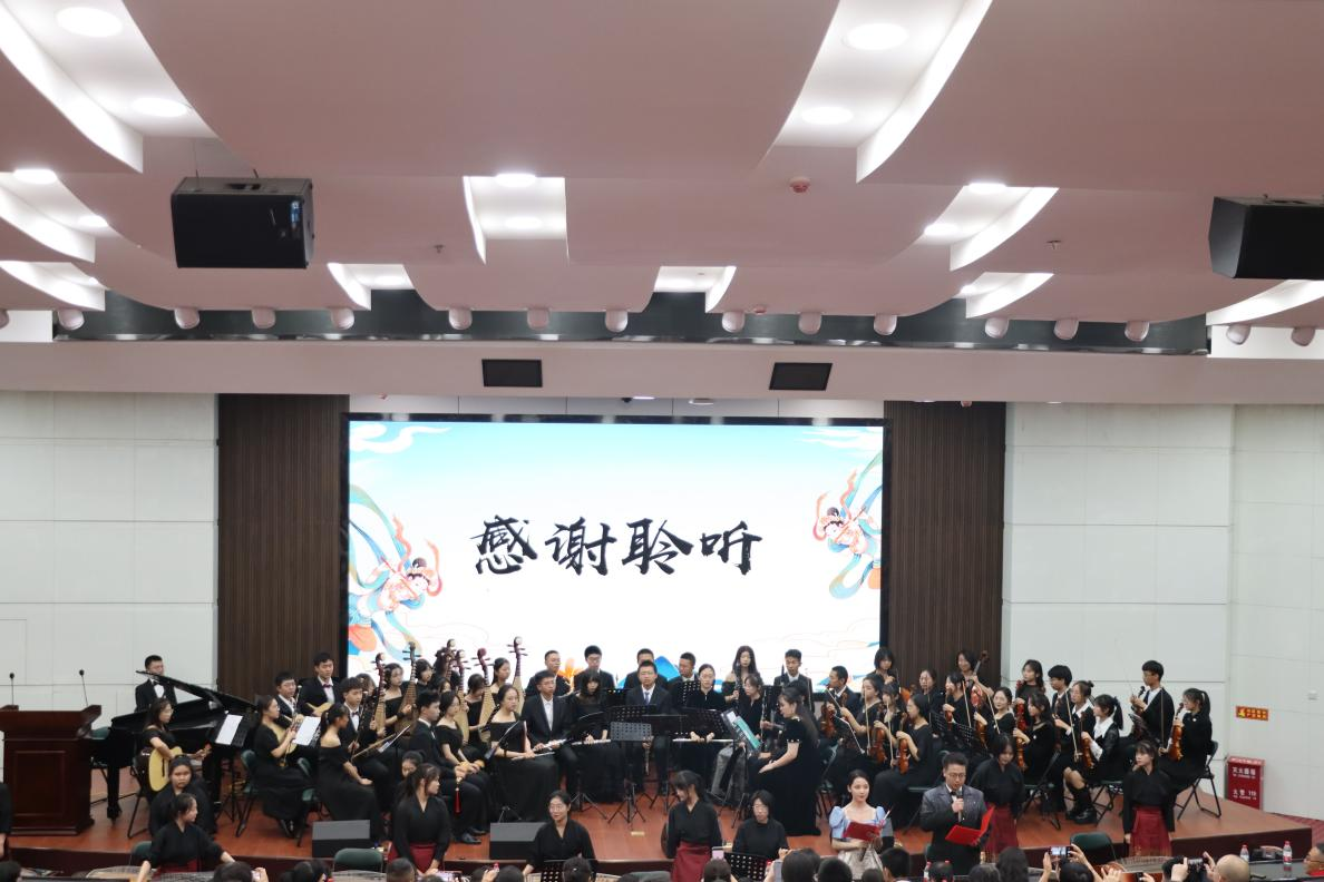 4月12日晚,由甘肃省教育厅主办,兰州交通大学承办的"乐阳光,乐青春"甘肃大中小学交流展演第5场在兰州交通大学尚德楼三楼大报告厅举行。音乐会由西北师范大学附属中学学生管弦乐团承演。兰州交通大学校党委常委、副校长陈光武,西北师范大学附属中学副校长杨涵雄,甘肃省教育厅思想政治工作处处长焦鹏宁,甘肃省教育厅体卫艺处副处长张捷出席,学校团委负责人及兰师生代表共计300余人观看了本场展演。