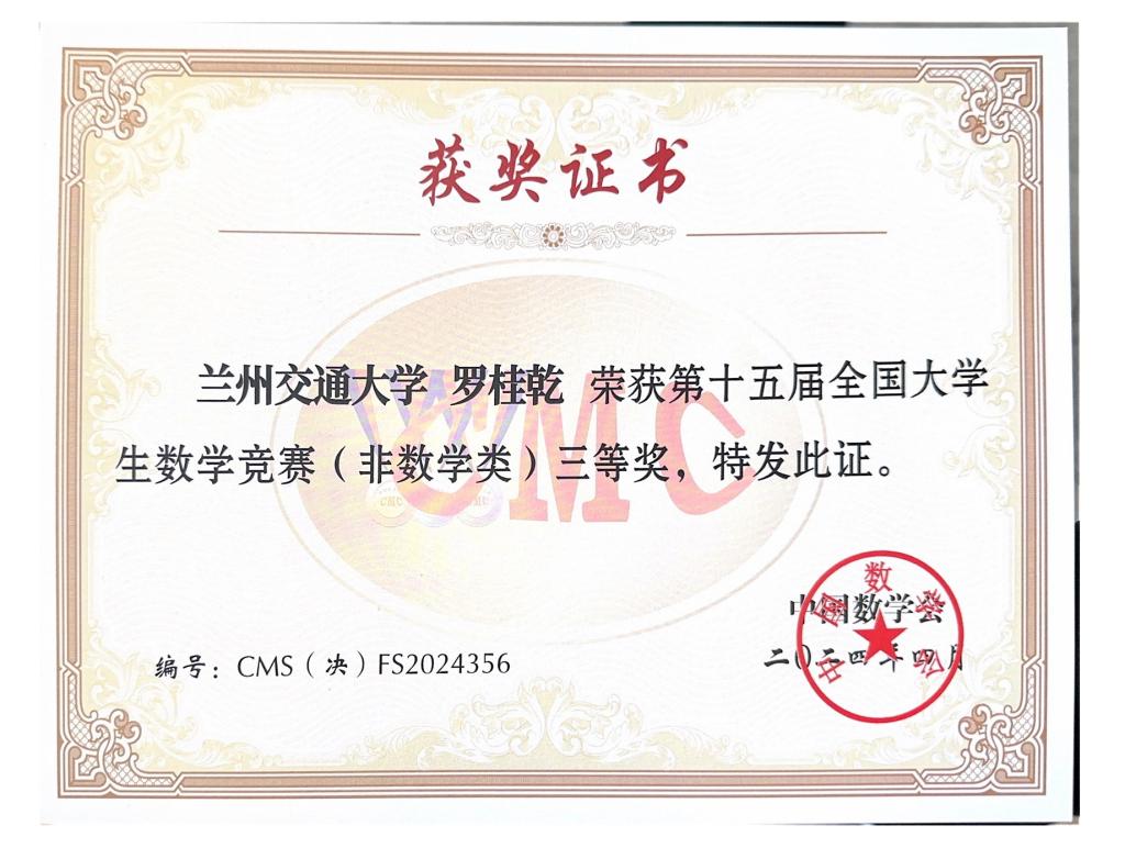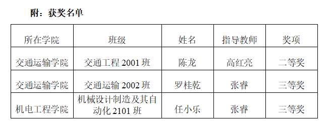 4月19至21日,由山东大学、山东数学会承办的第十五届全国大学生数学竞赛全国决赛在山东大学举行。我校3名学生进入非数学专业组A类全国决赛并斩获佳绩,其中陈龙(交通运输学院)同学获国家二等奖、罗桂乾(交通运输学院)和任小乐(机电工程学院)同学荣获国家三等奖。