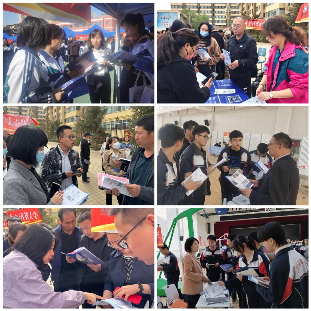 4月25日至30日,由招生就业处牵头组织,经济管理学院、测绘与地理信息学院、环境与市政工程学院、交通运输学院、外国语学院、文学院、新能源与动力工程学院、数理学院、机电工程学院、生物与制药工程学院、材料科学与工程学院等11个学院15名老师组成的招生宣传小组,分东西两线赴兰州、临夏、定西、甘谷、平凉、天水、武威、金昌、张掖、酒泉、嘉峪关等地开展本专科线下招生宣传。