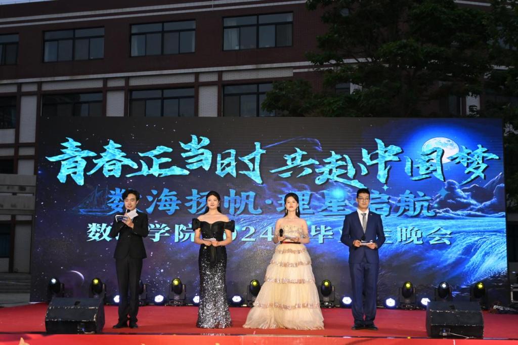 百年风华心向党,青春无悔梦启航。6月1日晚,数理学院举办的“青春正当时,共赴中国梦——数海扬帆,理星启航”2024届毕业生晚会在唐臣广场上演。党委常委、副校长朱廷珺出席晚会并全程观看节目,党委宣传部、教务处、学生处、招生就业处等相关职能部门负责人和数理学院领导班子、教师代表及全院学生观看了演出。