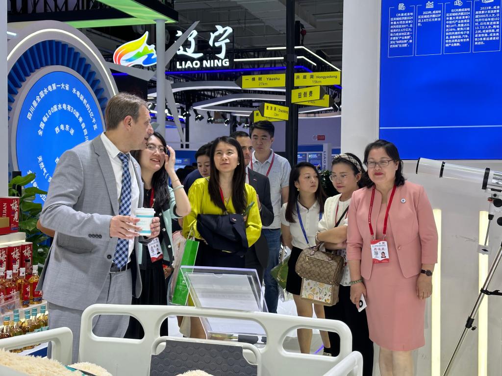 7月6日上午,第30届中国兰州投资贸易洽谈会在兰州隆重开幕。省委书记、省人大常委会主任胡昌升致欢迎辞,省长任振鹤等我省主要领导一同出席开幕式,乌拉圭佛罗里达省副省长马科斯·佩雷斯及乌拉圭驻重庆总领事瓦伦丁• 图里斯应邀出席。开幕式结束后,省政府外事办友城处举办了国际友城产业推介暨经贸合作对接会,乌拉圭佛罗里达省副省长马科斯·佩雷斯作为特邀嘉宾上台致辞。在兰洽会展览馆,马科斯·佩雷斯饶有兴趣的走访了乌拉圭国家馆、大禹节水等我省企业馆,对兰洽会取得的成就表示肯定与赞扬。