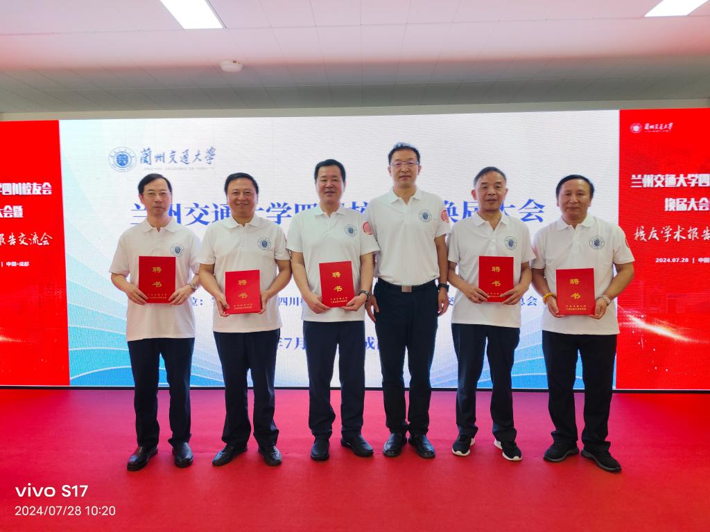 会议宣读了《关于兰州交通大学四川校友会换届申请的批复》,为新一届四川校友会理事会成员颁发聘书,为四川校友会授予校旗、会旗。