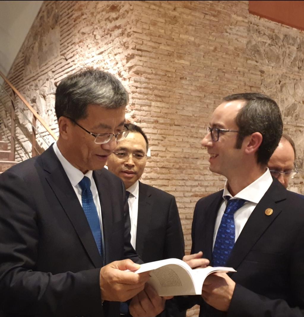 座谈会后外方院长冈萨洛·米兰达博士向怀进鹏部长赠送了个人著作《Un Viaje Por la Cultura China a Través de Su Lengua》(《通过语言穿越中国文化之旅》),怀进鹏部长对冈萨洛·米兰达博士的学术研究和汉语汇报给予了高度肯定,勉励塞维利亚大学孔子学院继续发挥桥梁作用,为进一步扩大中西文化交流、文明互鉴、促进多领域合作与发展作出新的贡献。