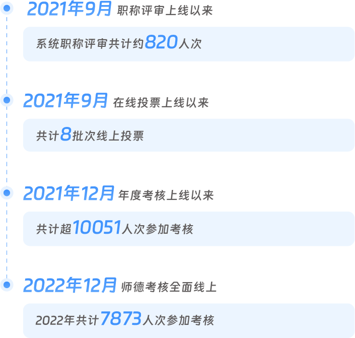 学校充分发挥职称评审的“指挥棒”作用,以吸引、用活和培育人才。自职称评审模块上线后,通过与知网的科研系统做集成,实现数据自动带入、一键导出报表等便捷操作,显著减轻教职工和审核人员的工作负担,提升职称评审的公平性和效率。值得一提的是,甘肃省已建有职称评审平台,校内评审通过的人才可直接在该平台上进行信息填写。此外,平台还支持在线投票功能,能够实时监控投票过程,自动统计票数,并支持一键导出投票汇总表以便打印签字存档,为职称评审工作提供了更为公正、客观、高效的评价方式。