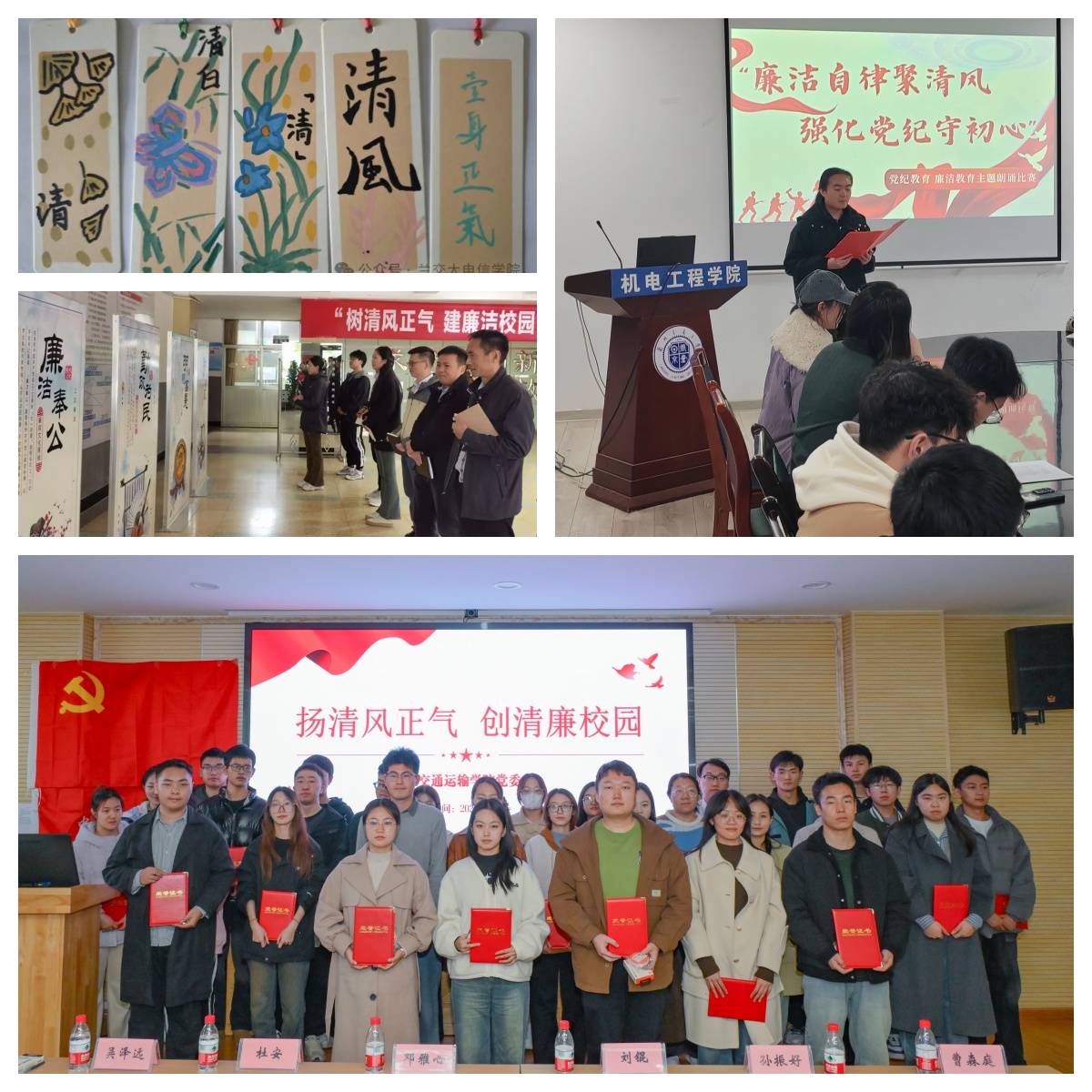 学校各二级党组织紧紧围绕“廉洁校园”建设,结合实际打造“一院一特色”“一院一品牌”,组织开展了“廉洁我来说”学习分享、共绘廉洁书签、廉洁主题教育实践、廉洁文化墙打造、知识竞赛、主题演讲、主题朗诵、廉洁书画展、微海报设计等形式多样的廉洁文化活动共计124项,推出了一批“看得见、叫得响、参与度高、师生喜闻乐见”的廉洁文化精品活动,充分发挥廉洁文化启智润心、涵养人心的重要作用,不断营造崇廉尚廉守廉校园氛围。