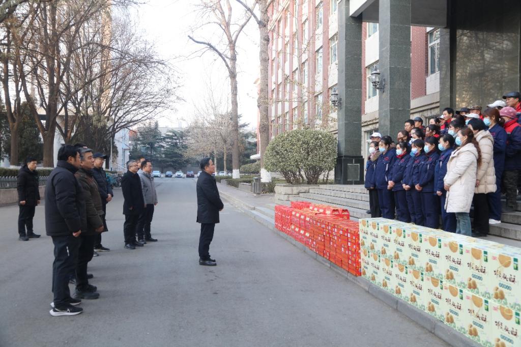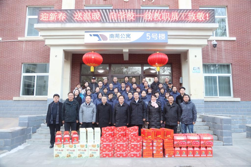 校工会为大家准备了干果大礼包、水果、饮料等慰问品。全体人员对学校领导的关怀表达感激之情,决心不辜负学校领导的期望,坚守岗位、认真履职,为广大教职工、家属以及假期留校的同学度过欢乐祥和、无忧无虑的寒假奉献自身的力量。
