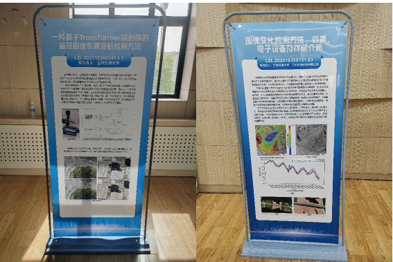 活动中,展出了8项人工智能领域专利转化案例,其中我校电信学院沈瑜教授团队研发的“一种基于Transformer端到端的遥感图像车辆目标检测方法”和火久元教授团队研发的“智能图像变化检测系统”分别入选,并在现场展出。