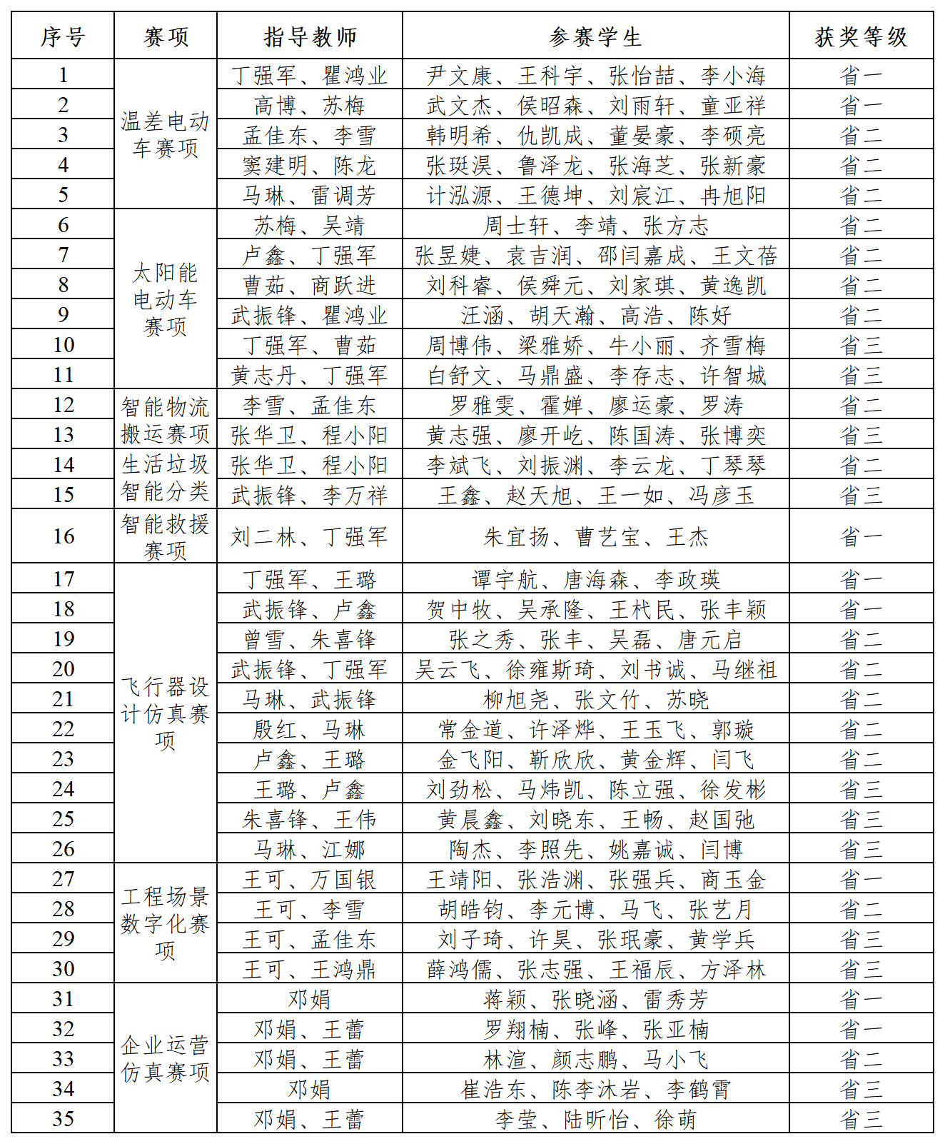 获奖名单