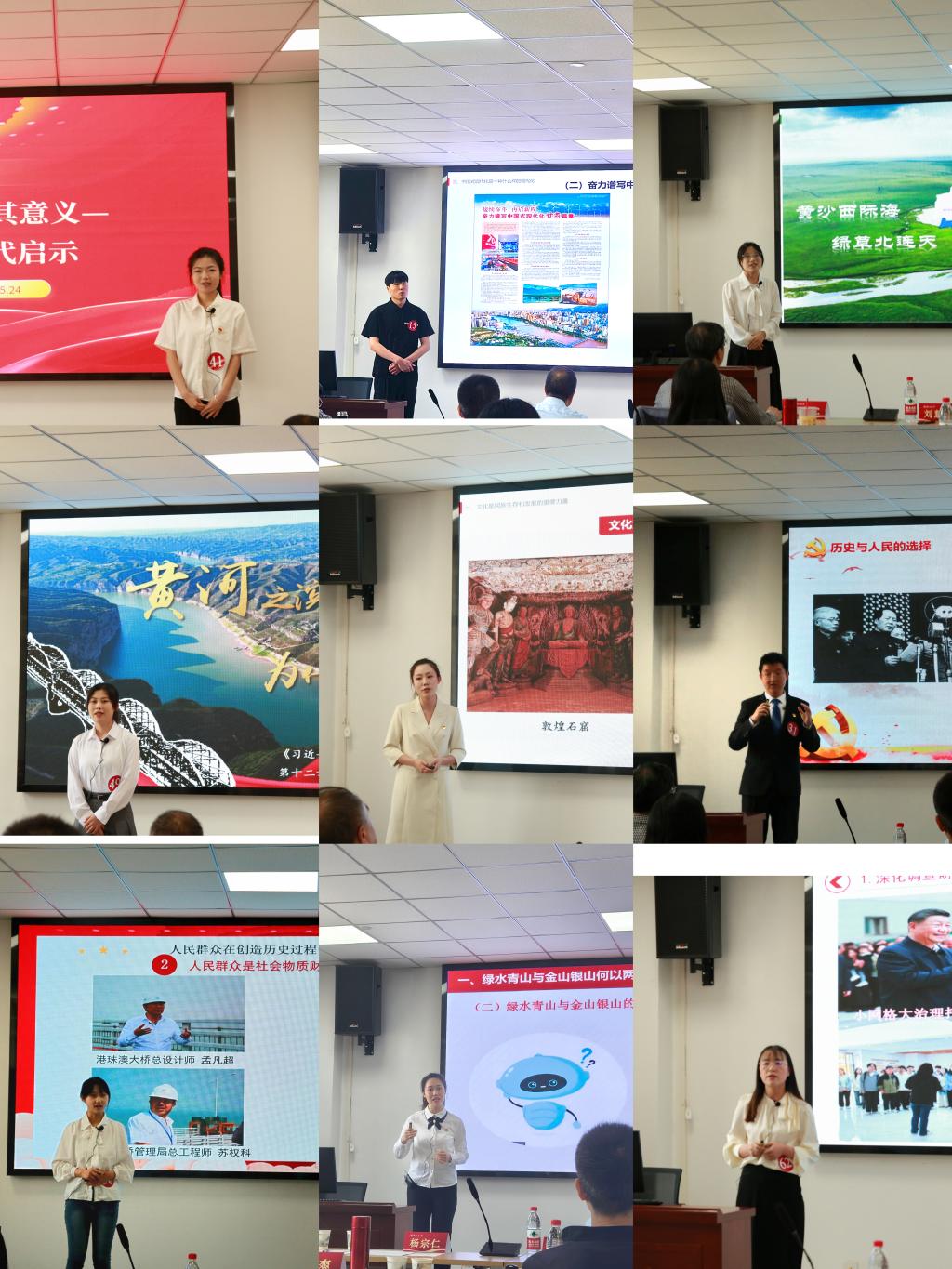 本次大学生讲思政课公开课展示活动的主题是“青春筑梦,强国有我”。按照要求,参赛团队须选取为本科生和研究生现开设的七门思政课程中的内容进行教学设计和现场讲授。各参赛团队准备充分,精神饱满,讲授内容紧扣思政课主题,紧紧围绕“中国式现代化”“绿水青山就是金山银山”“科技强国”以及“中国共产党人的精神谱系”等时代课题,在讲解过程中有机融入学校特色与甘肃实际,灵活运用情景模拟、案例分析、多媒体展示等多种形式的教学方法和手段,将生动的实践案例转化为富有感染力的教学资源,将抽象的理论知识转化为可以触摸和感知的时代故事,生动阐述了马克思主义理论的精髓和时代价值。