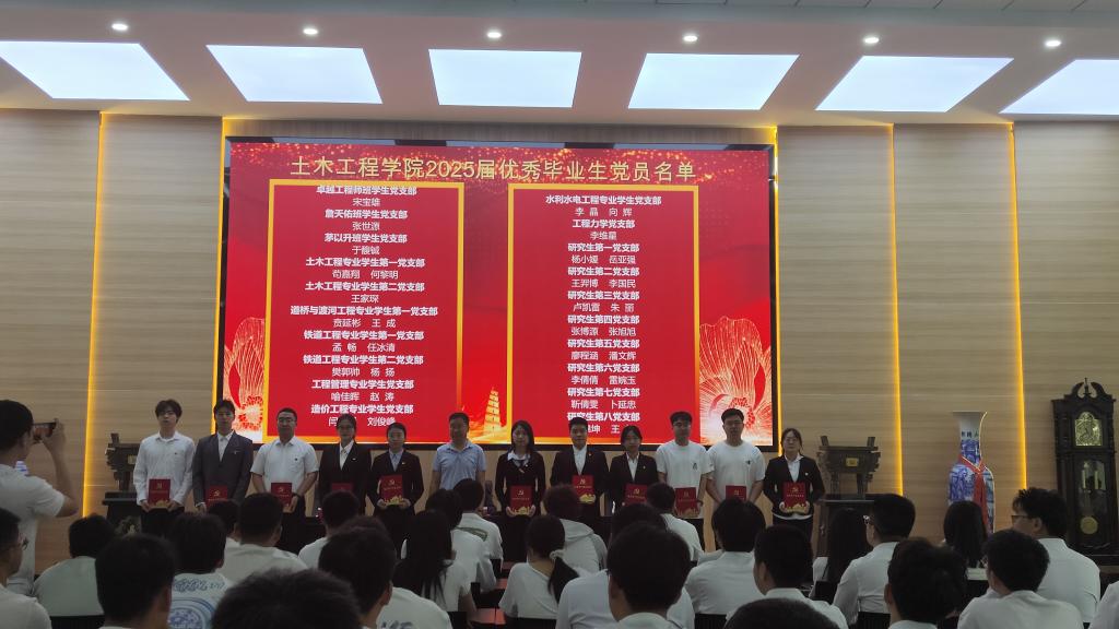 大会宣读了《土木工程学院关于表彰奖励2025届优秀毕业生党员的决定》。与会领导为获奖学生颁发了荣誉证书。
