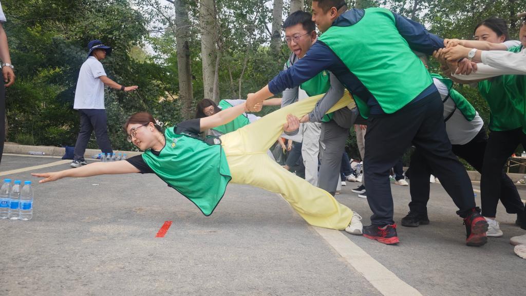 “信任躺”环节是对团队协作、信任与默契的考验。队员们克服心理障碍,勇敢向后倒去,由队友稳稳接住。一位参与活动的青年教师感慨:“倒下那一刻才真正体会到信任的力量,感谢队友的可靠!”随后的“群龙取水”挑战中,取水的老师在全队的通力协作下完成任务,展现了团队协作与沟通的重要性。
