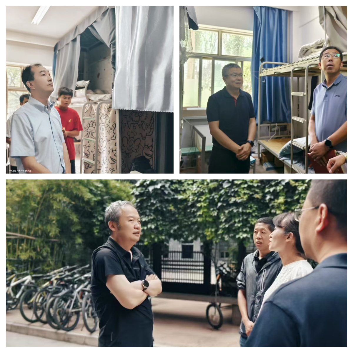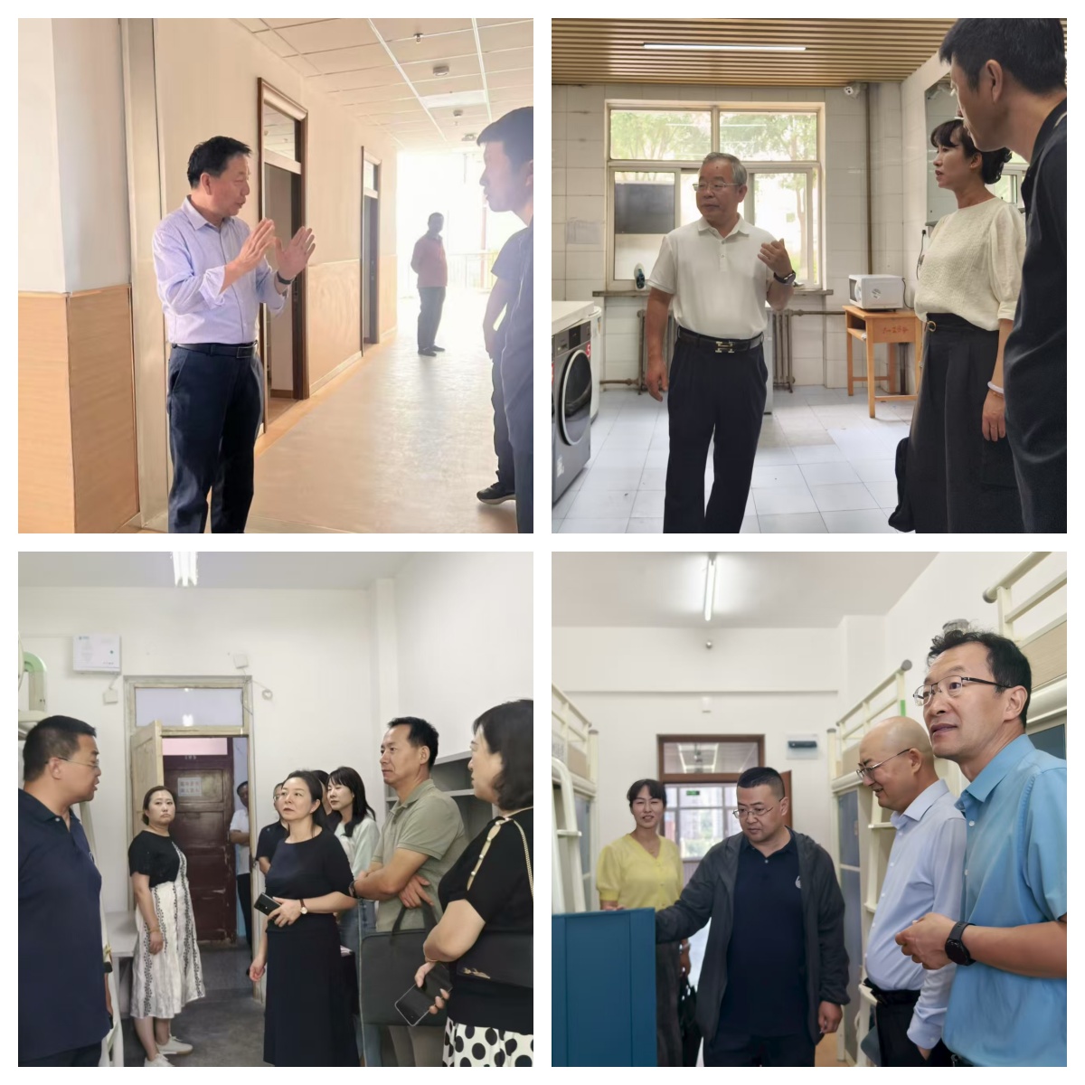 在学生宿舍,校领导与学生们进行面对面交流,详细询问他们的学习和生活情况,认真听取同学们对学校教育教学、后勤服务保障等方面的建议和意见,对同学们在学习生活方面存在的疑惑予以现场解答,并提醒学生要注意身体健康,保持良好的作息规律。校领导一行还对学生宿舍的生活设施、卫生状况、安全隐患及周边公共设施进行了细致查看,并对存在问题提出具体整改意见和要求。校领导要求:各学院(部)要做好学生思想教育工作,充分发挥学生党员及学生干部的模范带头作用,动员学生积极配合公寓管理工作,从小事做起,从身边做起,强化学生良好的养成教育,为构建文明校园增光添彩;相关部门要协同配合,加强管理,以“安全为底线、服务为根本、育人为目标”,切实解决学生实际需求,强化服务意识,确保学生公寓的安全稳定;针对暑期公寓修缮工期紧,任务重的特点,有关部门要科学规划工程进度,最大程度减少施工对学生生活的影响,积极倾听学生诉求,及时落实改进,协同做好新生住宿保障工作。