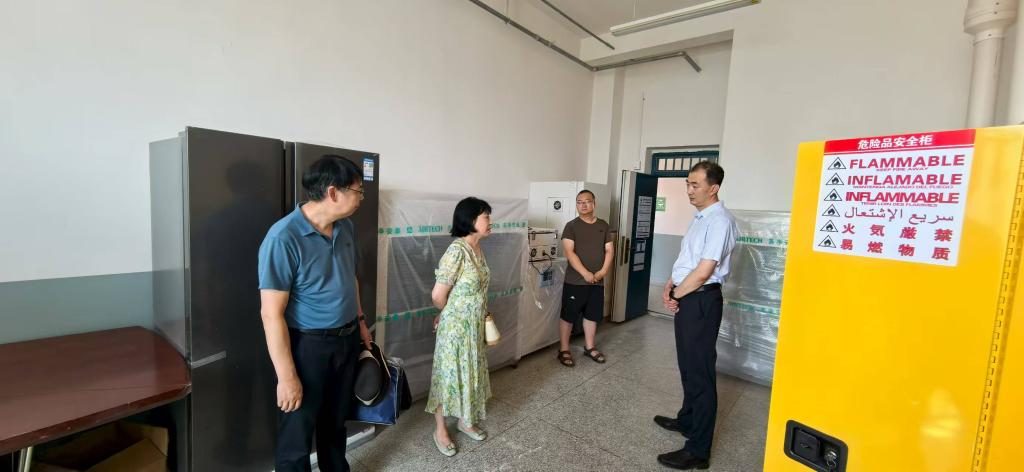 聂磊深入安全风险较高的科研实验室,聚焦仪器设备使用安全、危险化学品安全管理、用电安全等关键环节进行全面细致的检查。