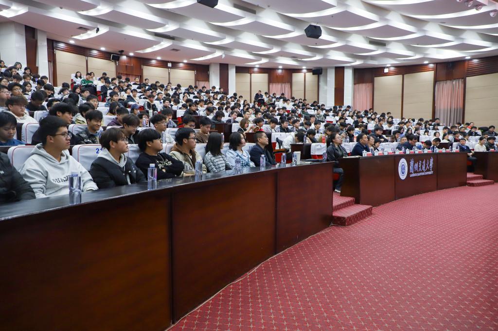 赵四辈从深刻学习领会党的二十届四中全会精神和习近平总书记重要讲话精神,筑牢“十五五”高质量发展的思想根基;贯彻落实“十五五”经济社会发展重大举措,在全省发展中大展身手;牢记殷殷嘱托,注重全面发展,共绘国家建设“青春画卷”三个方面,跟在场师生分享了近几年我省铁路建设取得的成就及在未来五年乃至更长时间里,我省铁路发展面临的机遇及重点工作。并对同学们提出把准“政治方向”,在胸怀大局中锚定青春坐标;锤炼“过硬本领”,在勤学苦练中夯实成长根基;秉持“创新精神”,在敢闯敢试中激发内生动力;投入“时代洪流”,用坚实脚步丈量远大理想的四点期望。