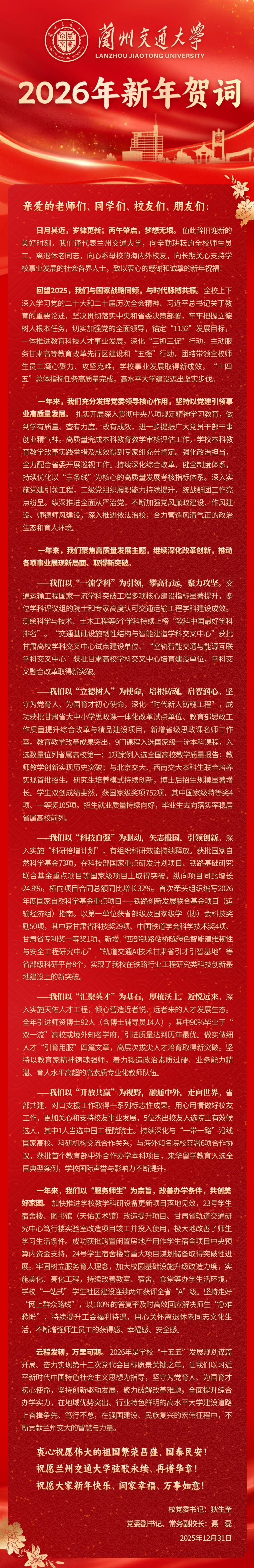 兰州交通大学2026年新年贺词