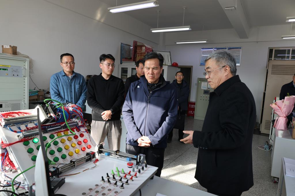 狄书记首先来到自动化与电气工程学院,看望了正在开展“驱动机构测试试验系统”项目系统样机调试的田铭兴教授。田教授详细介绍了项目进展和实验情况,狄书记对其团队在科研攻关中展现出的执着精神和务实作风表示赞赏,鼓励他们继续聚焦国家战略需求,勇攀科技高峰。