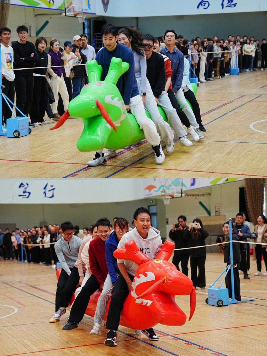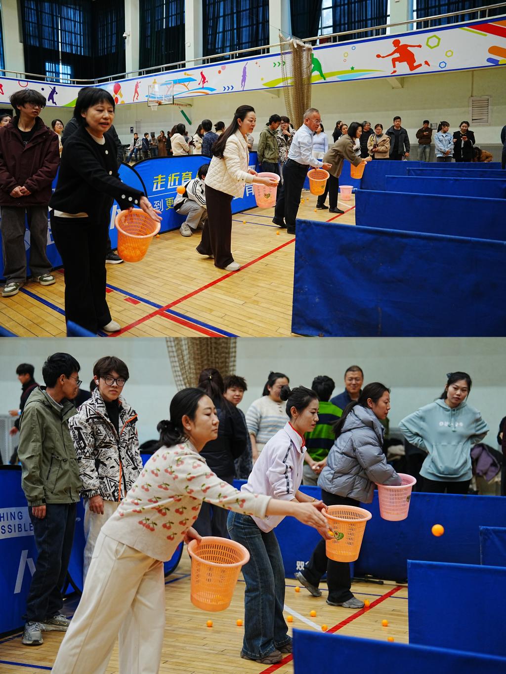 文艺表演后,备受期待的教职工趣味文体活动将现场气氛推向高潮。本次活动设置了乒乓球定点“投篮”、踢毽子、混合6人旱地龙舟等集趣味性、协作性与竞争性于一体的项目。来自各分会的代表队踊跃参与,奋勇争先。在乒乓球定点“投篮”赛场,女教师们凝神静气,巧妙投掷;踢毽子区域,彩毽翻飞,脚步轻盈;旱地龙舟比赛中,男女队员默契配合,口号嘹亮,竞速前行。天佑体育馆内喝彩声、欢笑声此起彼伏,大家在轻松愉快的比赛中锻炼了身体,增进了交流,凝聚了团队力量。所有趣味项目将同时计入学校第五十七届运动会团体总分,更添竞技色彩。
