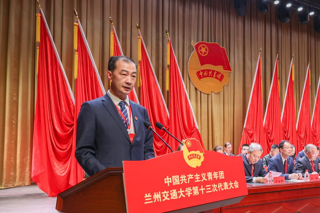 闭幕式上,大会宣布《关于<中国共产主义青年团兰州交通大学第十二届委员会工作报告>的决议》。校党委常委、副校长陈光武讲话。他指出本次大会是全校上下深入学习贯彻习近平新时代中国特色社会主义思想和党的二十大、二十届三中、四中全会精神,锚定学校“1152”发展目标,向着建设区域优势突出、行业特色鲜明的高水平大学奋勇迈进的关键节点,召开的一次青春盛会。会议期间,各位代表以高度的政治自觉和强烈的责任担当,认真审议工作报告,积极建言献策,依法选举产生新一届团委领导机构,明确了未来一段时期学校共青团工作的奋斗目标、重点任务。大会始终洋溢着民主团结、奋进务实的浓厚氛围,是一次高举旗帜、凝聚共识、继往开来、催人奋进的大会,必将为学校共青团工作高质量发展注入强劲动力。结合学校发展和青年工作实际,陈校长提了三点希望与要求:一是团员青年要坚定理想信念,争做堪当大任的时代新人;二是团干部要锤炼过硬作风,争做青年信赖的贴心人;三是各级团组织要扛起政治责任,开创青年工作的崭新局面。