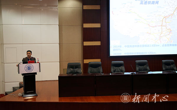 11月3日下午,我校在国际会展中心三楼报告厅举行2015年干部教育培训第三场专题报告会。西南交通大学牵引动力国家重点实验室副主任、博士生导师、我校“飞天学者”特聘教授王开云研究员应邀作了《中国高速铁路发展进程及其关键科学问题》的专题报告。