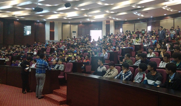 张宝玉总经理以“极客制造——云时代大学生创新创业方案解析”为题,为电信学院300余名师生做了精彩讲座。讲座中,张宝玉总经理对智慧产业、创客平台以及如何利用云平台进行大学生创新创业等系列话题做了阐述。互动环节,张宝玉总经理和我校学生,就云时代下大学生创新创业这一主题,进行了深入交流。