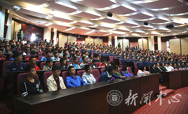 10月20日上午,南海舰队某部政治部副主任张立松应邀为我校师生作海洋安全形势报告。兰州市委市政府、市民政局、兰州警备区、安宁区委、武装部相关负责人,我校副校长陈兴冲、相关部门负责人及300余名师生听取了报告。