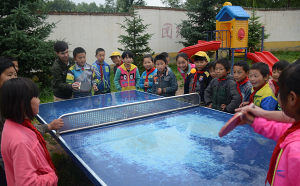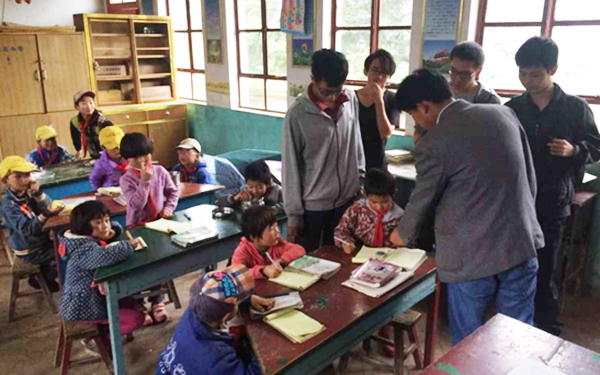 捐赠仪式结束后,建筑学院大学生与鸣关村小学生进行了内容丰富的联谊活动,手把手教他们打乒乓球,同时大学生们深入教室,与小学生们亲切交谈,询问他们的学习情况,检查作业完成情况,并教他们识字,有力地促进了“双联”工作的顺利开展。