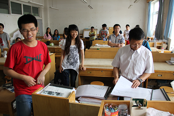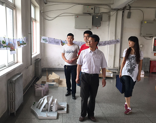 在同学们的簇拥下,陈兴冲副校长先来到建筑1201班的固定教室,参观了班级模型制作和钢笔画展。在阅览了作品集后,陈兴冲副校长坐下来与同学们就学科背景、职业发展、学习生活和体育锻炼等方面进行了深入的交流,激励大家注重修身、面向未来。