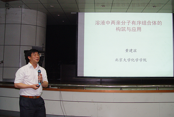 报告中,黄建滨教授就溶液中两亲分子的发展趋势及目前研究中存在的问题作了简单介绍,详细讲解了自己的课题组在两亲分子自组装及纳米结构方面的研究、利用环境因素(温度、光、pH及氧化还原等)调控胶束、囊泡等有序结构现象研究以及具有表面疏水性物质在油田中的应用等方面的最新研究进展。
