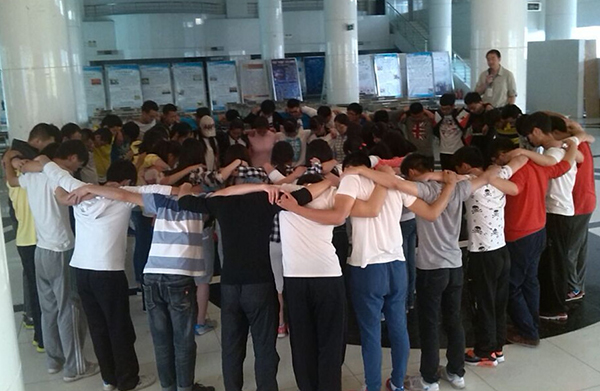 活动首先由破冰活动开始,目的让队员们了解拓展培训的意义和要达到的预期效果,让彼此并不熟悉的同学们尽快找到默契。随后全体参训成员通过“链接加速——团结你我他”、“盲人建屋——我与团队”、“无敌风火轮——创建优良团队”、“吸管运输——团队中的我”、“团体跳绳——我们是一家人”等系列活动进行了生动而有趣的拓展。活动的趣味性让在场的每一位同学无不尽笑颜开,同时在活动的中间还不时地穿插一些总结,真正让同学们体会到了其中所蕴含的“团队协作、高效率完成工作”的知识。
