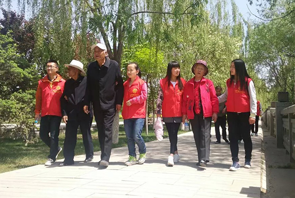 5月8日,下午两点,志愿者们陪同残疾人们来到寓言故事园,一路上大家有说有笑,积极热情地与残疾人朋友聊天。活动开始,志愿者们扶着残疾人们沿着黄河散步,既锻炼了老人们的身体,也舒缓了压抑的心情。当老人们走累了之后,志愿者们就把他们搀扶在椅子上休息。休息期间,志愿者们有的唱红歌,有的跳舞,有的陪老人聊天逗老人们开心。为了体验盲人的感受,志愿者们纷纷闭上眼睛,手搭着前面人的肩膀,开始一个名为“扮盲人”的游戏。通过这个游戏,志愿者们体验到了黑暗的可怕,也体会到了盲人的不易。活动结束后,大家与残疾人朋友一起合影留念,依依不舍地和老人们告别并承诺老人们以后会继续陪他们出游,关爱他们。