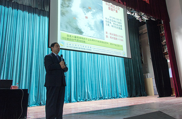 报告会上,黄建平教授从全球变暖这一事实入手,向大家阐述了天气与气候的区别、气候系统的组成以及气候变化的原因等一系列有关气候的知识;进一步分析了全球变暖的主要原因,介绍了近年来气候变化给中国带来的危害,提出了防止全球变暖的应对措施,并发出了“明天,我该去哪里”的疑问,发人深省。他呼吁广大研究生要自觉养成低碳生活的理念,从自身做起,保护环境,保护气候,共建人类美好的家园。
