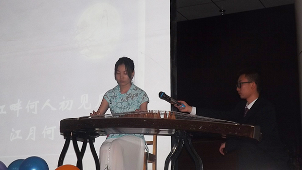 自选诗歌朗诵组的比赛分为风采展示、自选诗歌朗诵和现场抽签朗诵三个环节。风采展示环节,要求参赛选手用一句诗来介绍自己。自选诗歌朗诵环节,从诗歌篇目选择到现场朗诵氛围,充分地展现了选手们对诗歌的理解与感悟。该环节中,选手们抑扬顿挫又饱含深情的朗诵带领全场观众进入到了诗歌的美妙世界。文学院参赛选手房嘉铭同学,一首自弹自吟的《春江花月夜》古筝诗朗诵,更是惊艳了全场。现场抽签朗诵环节,考察的是选手们对诗歌的第一感觉和临场表现。该组别选用的诗歌均为中国近现代汉语诗歌,这也是结合文学院所开全校公选课《新诗鉴赏》,在开展团学活动方面的尝试与创新。