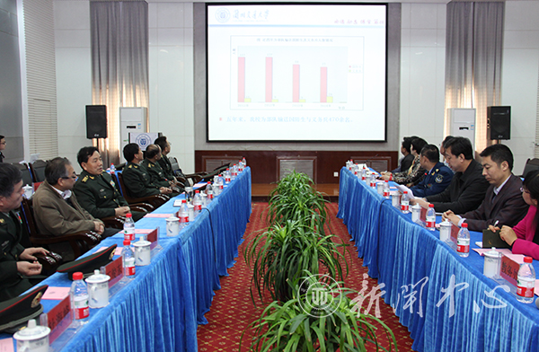 汇报会上,马军党副校长介绍了我校的发展概况并汇报了我校近年来“双拥”工作的开展情况。