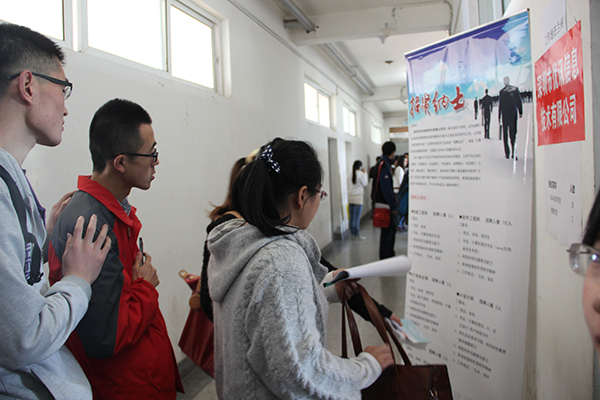 上午9时,招聘会开始。2015届毕业生身着正装、井然有序地进入招聘会场,根据各单位的岗位需求、薪资待遇、工作地点等有目标地前往各招聘教室与企业人力资源主管进行面对面交流,热切期望可以在招聘会中签约心仪的单位。