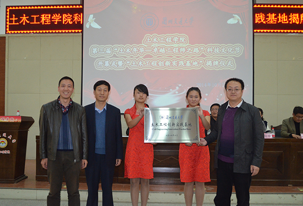 为促进大学生创新实践能力,为同学们科技创新提供有效平台,该院今年专门设立了“土木工程创新实践基地”并在开幕式上揭牌。