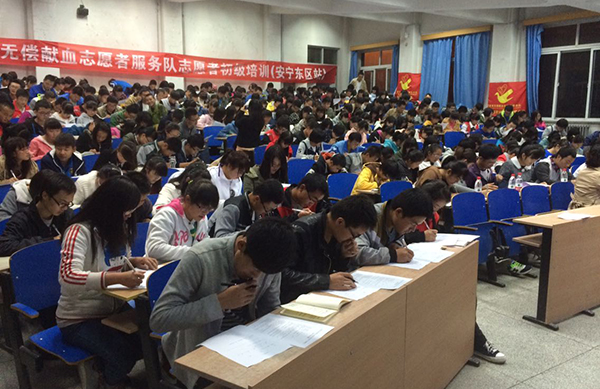 甘肃省无偿献血服务队还对参会人员进行了考核并且对合格人员当场颁布志愿者证。