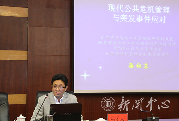 10月17日下午,我校干部教育培训第四场专题报告会在国际会展中心报告厅举行,甘肃省委党校工商管理教研部教授、IPMP认证项目管理专家张向东应邀作了题为《现代公共危机管理与突发事件应对》的报告。