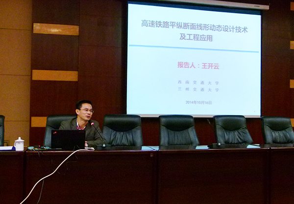 10月16日上午,西南交通大学牵引动力国家重点实验室研究员、博士生导师王开云教授前来我校,在国际会展中心三楼报告厅作了题为《高速铁路平纵断面线形动态设计技术及工程应用》的报告会。我校机电学院、土木学院的研究生和部分教师聆听了报告。