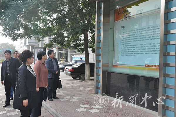 听取汇报会后,督查组查阅了相关材料,并参观了我校举办的《十八大以来廉政新规定》宣传橱窗。